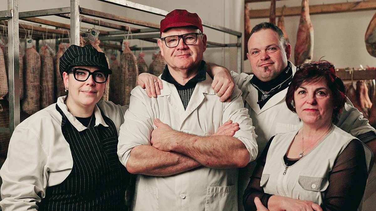 Era il 1948 quando Armando Roberti, classe 1926, ha deciso di aprire, con sua moglie Luigia, un’osteria nelle colline sopra San Giorgio di Pesaro dove strade bianche collegavano piccole chiese di campagna e isolate case coloniche abitate da mezzadri. Erano anni in cui ancora si lavorava la terra con il solo aiuto di buoi e di attrezzi rudimentali. La povertà del dopoguerra non soffocava la voglia di stare insieme, di godere dei piaceri della vita, del buon mangiare e della buona musica per ballare. Il locale di Armando e Luigia ha immediatamente rappresentato l’autenticità della cucina marchigiana dell’entroterra grazie ai sapori degli ingredienti di qualità della loro cucina, al calore riservato ai clienti e a una accoglienza autentica e generosa. La piccola osteria – che era anche un piccolo spaccio alimentare e un luogo di ristoro e di ritrovo dove bere un buon bicchiere di vino e assaggiare un salume – nel 1965 diventa un ristorante. La Gigia – la moglie di Armando – diventa famosa per le sue tagliatelle, i cappelletti, le lasagne, i cannelloni, gli arrosti e le carni cotte alla griglia. A Montecucco la dura vita dei campi è spesso rallegrata da piccole festicciole con buoni piatti, buon vino e tanta musica che Armando organizza negli spazi all’aperto fuori dal locale. Intanto la famiglia si allarga. Nascono ben dieci figli e il ristorante può contare su validi e volenterosi aiutanti. Nei primi anni 70, i Roberti decidono di costruire una nuova grande sala che sia anche un ampio spazio per ospitare grandi orchestre di liscio e folle di ballerini. Raul Casadei e la sua orchestra diventano una delle presenze costanti che richiamano appassionati da tutta la regione e dalla Romagna. Mentre il ristorante continua a garantire un’altissima qualità del cibo Marco Roberti, il figlio di Armando, ha dato vita a un’azienda agricola e a un allevamento zootecnico in grado di fornire ingredienti di indiscutibile genuinità.